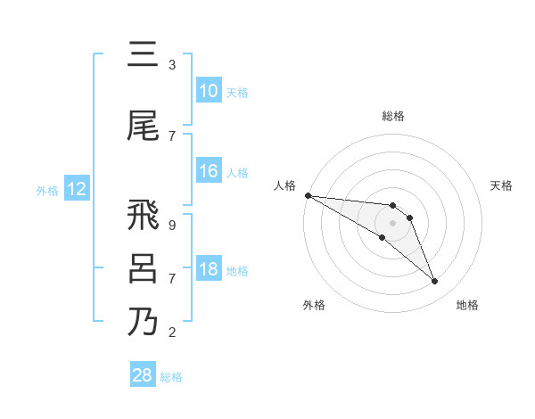 三尾 飛呂乃さんを姓名の画数から五運を鑑定