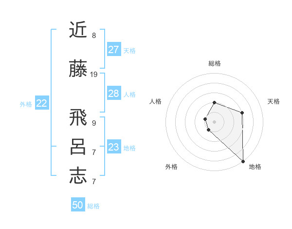 近藤 飛呂志さんの総格は50画の2点!