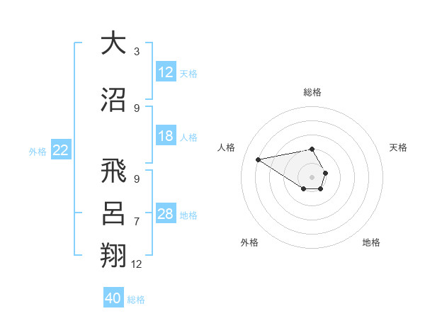大沼 飛呂翔さんを姓名の画数から五運を鑑定