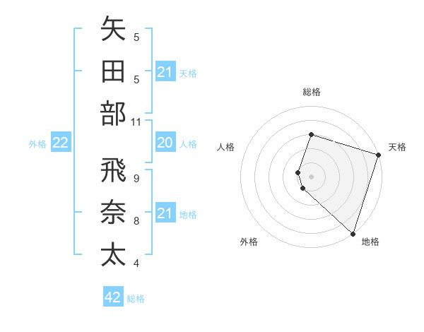 矢田部 飛奈太さんの天格は21画の5点!