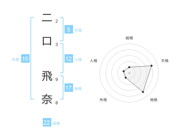 二口 飛奈さんを姓名の画数から五運を鑑定