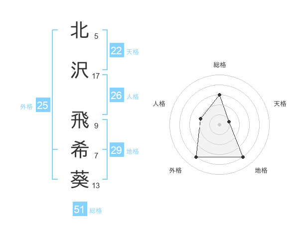 北沢 飛希葵さんを姓名の画数から五運を鑑定