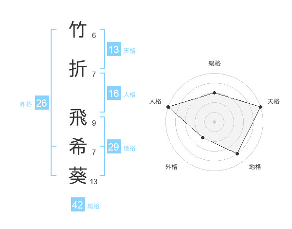 竹折 飛希葵さんの天格は13画の5点!