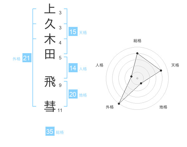 上久木田 飛彗さんを姓名の画数から五運を鑑定