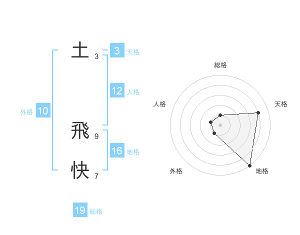 土 飛快さんの地格は16画の5点!