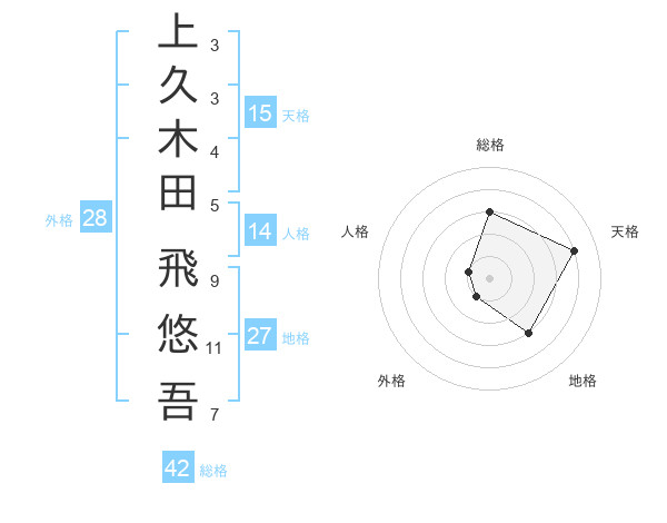 上久木田 飛悠吾さんを姓名の画数から五運を鑑定