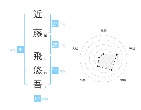 近藤 飛悠吾さんを姓名の画数から五運を鑑定