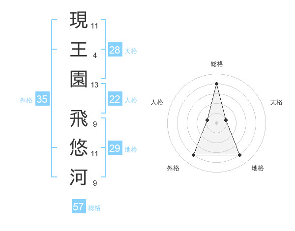 現王園 飛悠河さんを姓名の画数から五運を鑑定