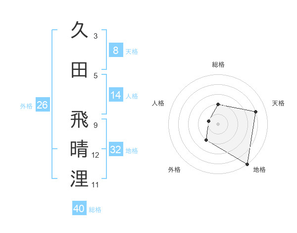 久田 飛晴浬さんを姓名の画数から五運を鑑定