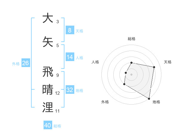 大矢 飛晴浬さんの天格は8画の4点!