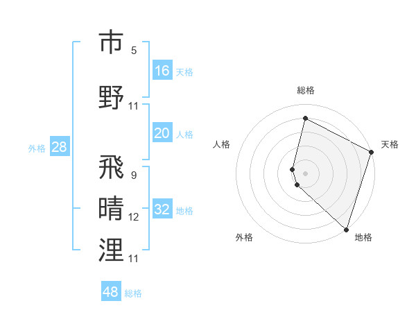 市野 飛晴浬さんを姓名の画数から五運を鑑定