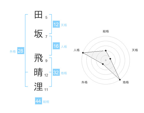 田坂 飛晴浬さんを姓名の画数から五運を鑑定