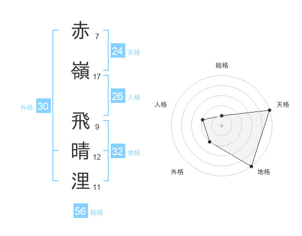 赤嶺 飛晴浬さんの天格は24画の5点!