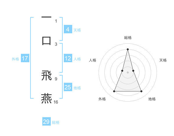 一口 飛燕さんを姓名の画数から五運を鑑定