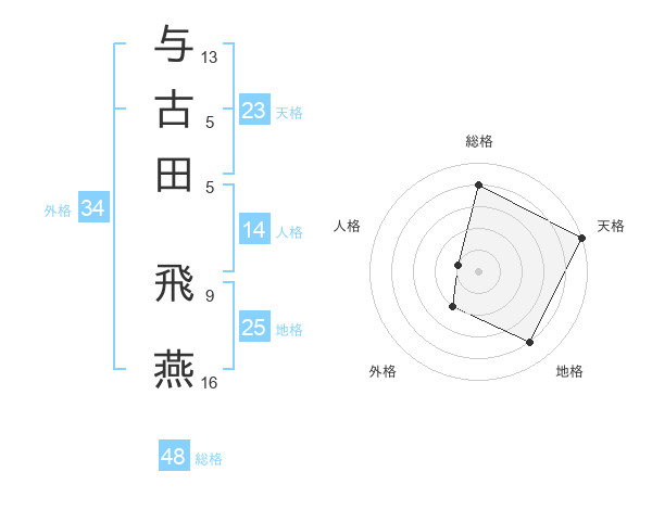 与古田 飛燕さんの天格は23画の5点