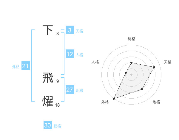 下 飛燿さんの総格は30画の2点!