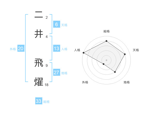 二井 飛燿さんの総格は33画の4点!