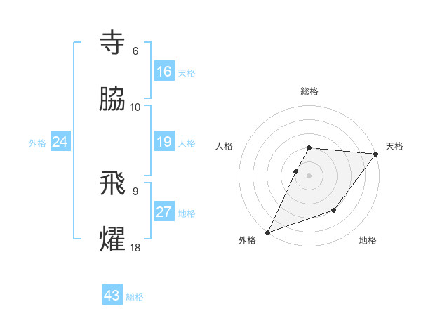 寺脇 飛燿さんを姓名の画数から五運を鑑定