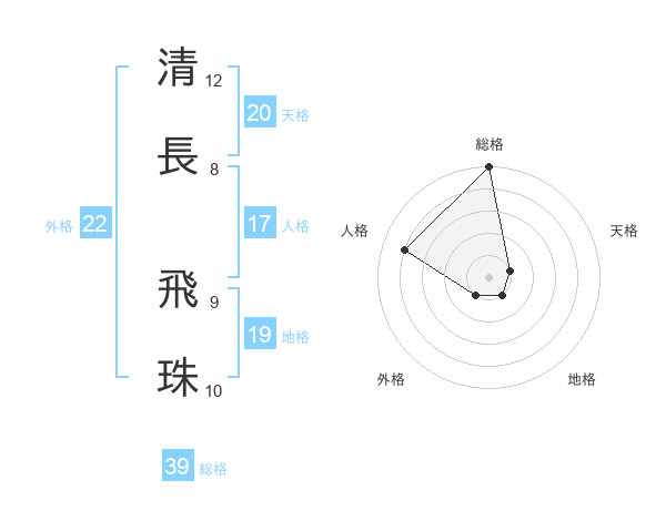 清長 飛珠さんの総格は39画の5点!