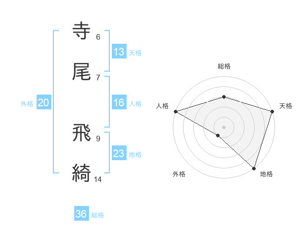 寺尾 飛綺さんを姓名の画数から五運を鑑定