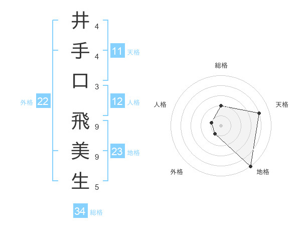 井手口 飛美生さんを姓名の画数から五運を鑑定