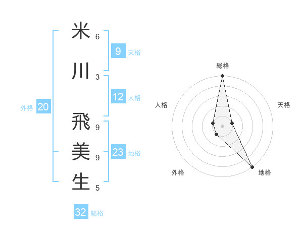 米川 飛美生さんの総格は32画の5点