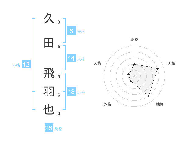 久田 飛羽也さんを姓名の画数から五運を鑑定