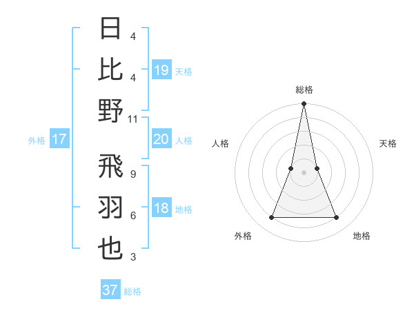 日比野 飛羽也さんの総格は37画の5点!