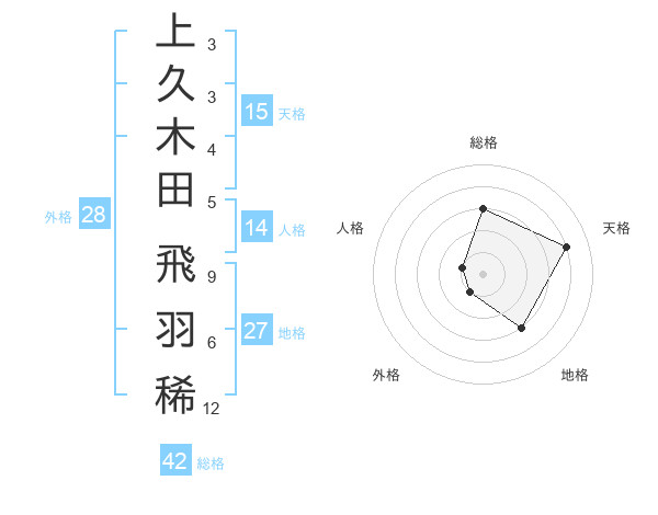上久木田 飛羽稀さんを姓名の画数から五運を鑑定