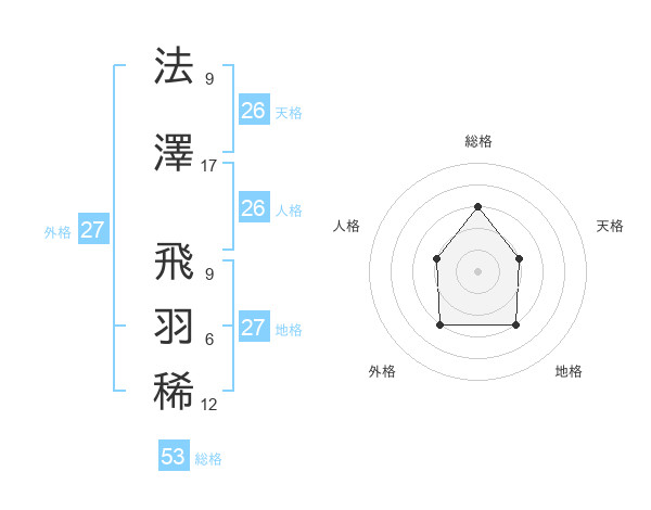 法澤 飛羽稀さんの総格は53画の3点