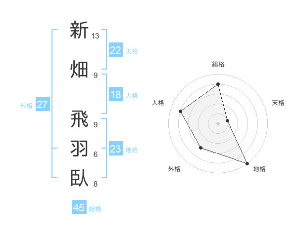 新畑 飛羽臥さんを姓名の画数から五運を鑑定