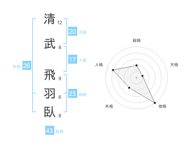 清武 飛羽臥さんを姓名の画数から五運を鑑定