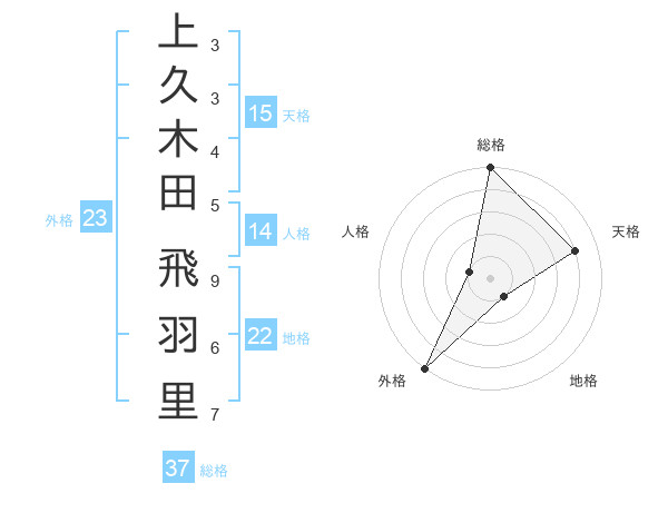 上久木田 飛羽里さんを姓名の画数から五運を鑑定