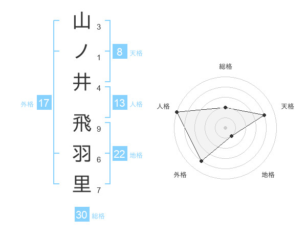 山ノ井 飛羽里さんを姓名の画数から五運を鑑定
