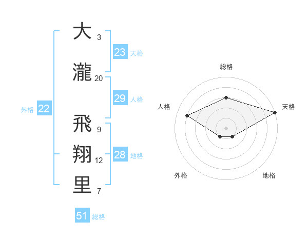 大瀧 飛翔里さんを姓名の画数から五運を鑑定