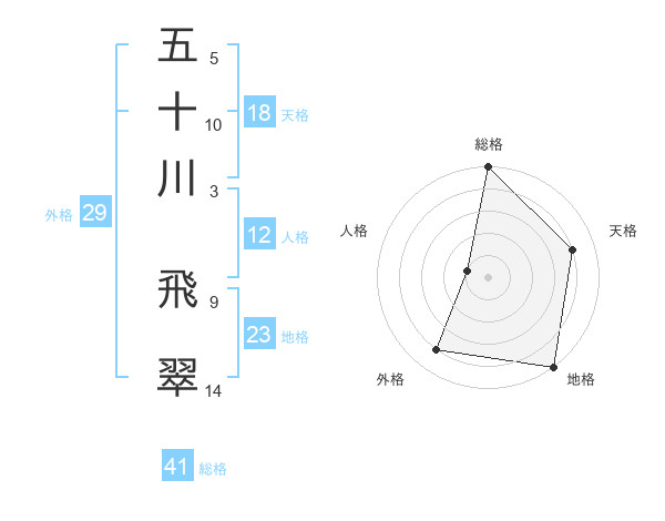 五十川 飛翠さんを姓名の画数から五運を鑑定