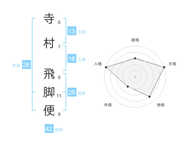 寺村 飛脚便さんを姓名の画数から五運を鑑定