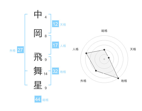 中岡 飛舞星さんを姓名の画数から五運を鑑定