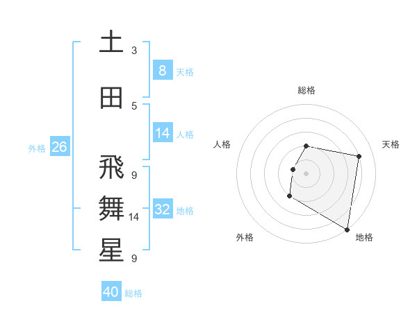 土田 飛舞星さんを姓名の画数から五運を鑑定