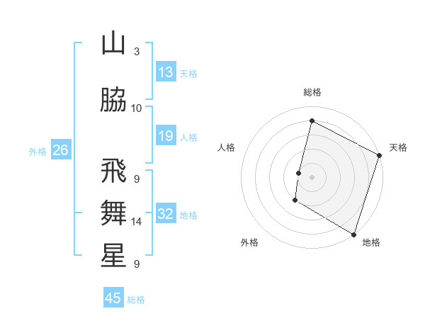 山脇 飛舞星さんを姓名の画数から五運を鑑定