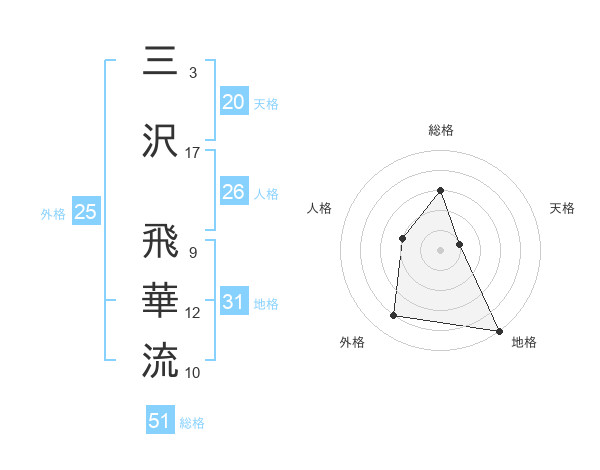 三沢 飛華流さんを姓名の画数から五運を鑑定