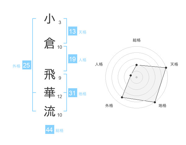 小倉 飛華流さんを姓名の画数から五運を鑑定