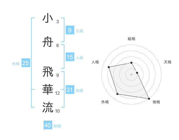 小舟 飛華流さんを姓名の画数から五運を鑑定