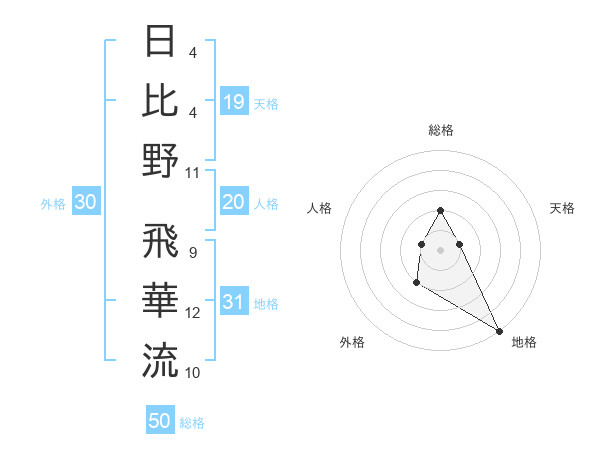 日比野 飛華流さんを姓名の画数から五運を鑑定