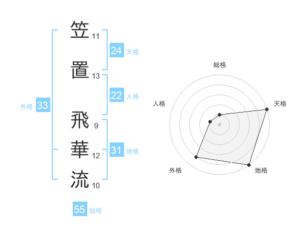 笠置 飛華流さんを姓名の画数から五運を鑑定