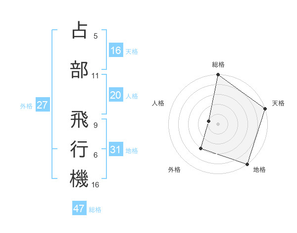 占部 飛行機さんを姓名の画数から五運を鑑定