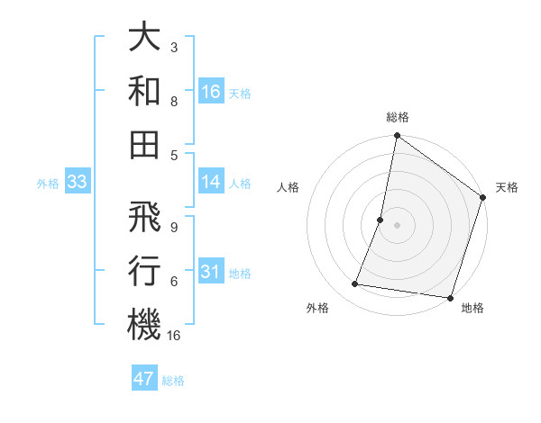 大和田 飛行機さんを姓名の画数から五運を鑑定