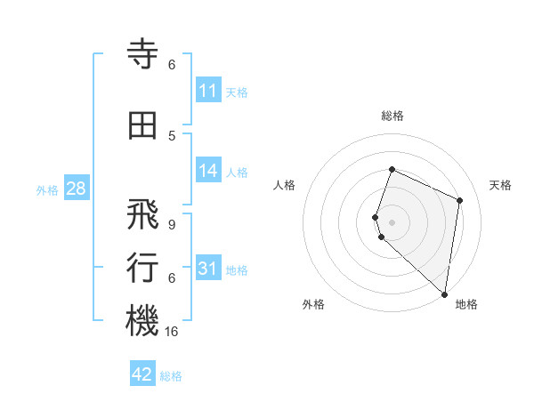 寺田 飛行機さんの地格は31画の5点!