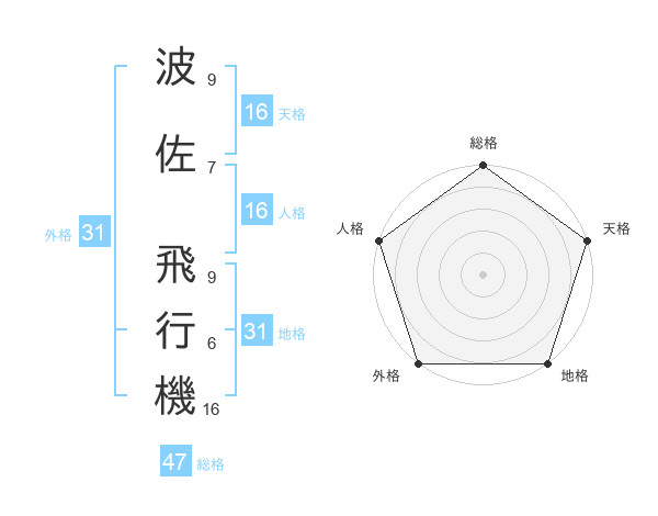 波佐 飛行機さんを姓名の画数から五運を鑑定