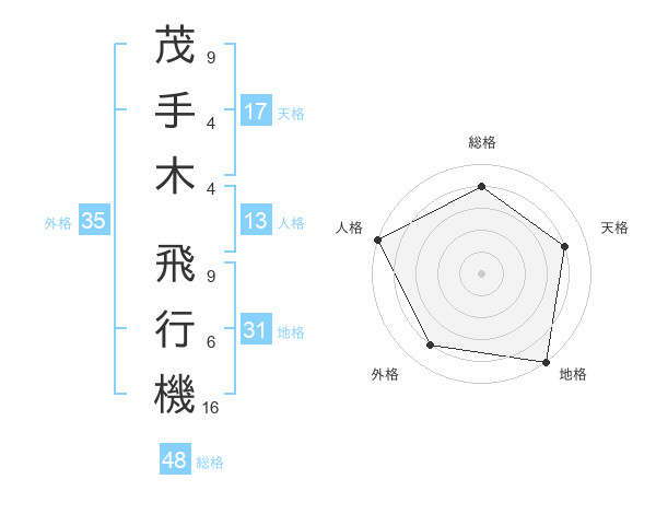 茂手木 飛行機さんを姓名の画数から五運を鑑定